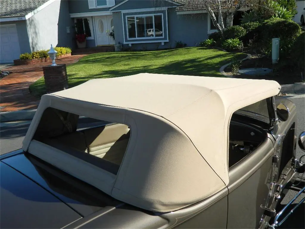 This 1932 Ford Roadster is show quality and is stunning in a beautiful GM Dark Bronze metallic paint. Power is supplied by a reliable 350 small block Chevy motor with turbo 350 automatic transmission. Raven fiberglass body and TCI chassis, a 106 wheel base, and a 4 inch drop front axle. Disc brakes up front, drum in the rear. Raven front windshield and frame, Walker radiator with Brookville radiator shell, Rootlieb metal hood, 34 Ford headlights and 41 to 46 Chevy taillights, Wheel Shop wire spoke wheels, and a custom full cloth top that ads nicely to the look of this custom classic. Inside is just as nice with a traditional tuck and roll interior with Glide seat, Stewart Warner gauges, Flaming River Column, Gennie shifter and Lokar pedals. This is one nice street rod all around. Offered at $42,500 OBO. For more information please visit our website at www.classiccarmarketing.net or call us at 619-972-7073. Please mention the vehicle you are inquiring about so we can respond promptly. Inspections are encouraged before any purchase, of any vehicle, anywhere.