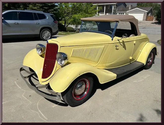 Classic Car Marketing, Inc. Southern California’s premier marketing company is pleased to introduce this new listing offered for sale by one of our clients. This 1934 Ford Roadster is yellow with red accents and is a beautiful classic inside and out. Only 10,700 pampered miles, updated chassis, and a fun rumble seat for your best friend. Power is supplied by a 302 Ford with the aluminum Edelbrock intake backed by a three speed automatic transmission. Mustang two front suspension with disc brakes upfront, and 9 inch rear end with drum brakes. Inside find a beautiful tan interior with custom gauges, custom sound system and a tan top with clear curtains. Car is located in East Wenatchee, Washington. Offered at $34,500 OBO. Inspections are encouraged before any purchase, of any vehicle, anywhere.For more information, contact us at (619) 972-7073 or email us at askus@classiccarmarketing.net