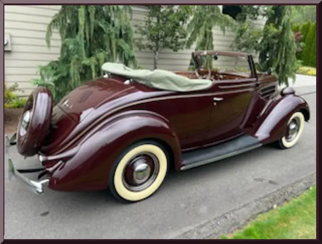 Classic Car Marketing, Inc. Southern California’s premier marketing company is pleased to introduce this new listing offered for sale by one of our clients. This 1936 Ford Cabriolet Deluxe is all steel and is an investment grade classic. The body was stripped and repainted in a correct Ford Maroon paint and the frame was stripped and repainted in a correct light tan. The undercarriage is highly detailed and is show quality. The convertible top frame has been restored, all new weather stripping, all chrome has been replated and polished, and all glass is in excellent condition. Original 221 Flat head has been rebuilt and is in excellent condition as are all the accessories. Rebuilt manual transmission. The engine bay has been restored to like factory appearance when new. The interior was restored to new condition and all dash trim and gauges have been restored, and floor shifter and pedals restored. All 16 inch original Artillery wheels have been restored and correct reproduction Firestone Deluxe Champion wide whitewall tires installed. Everything has been done and has been maintained to make this a show quality classic you will want for your collection. This car is located in Seahurst, Washington. Offered at $64,900 OBO. Inspections are encouraged before any purchase, of any vehicle, anywhere.