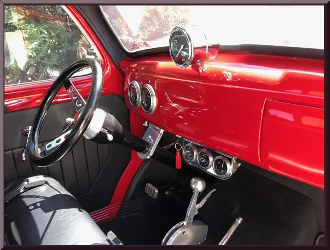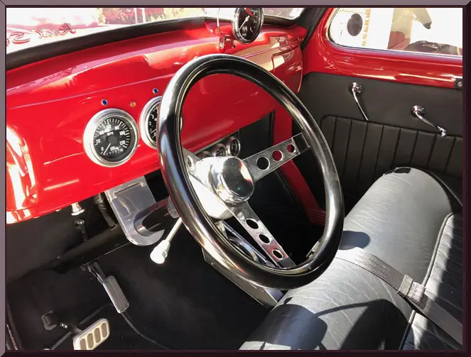 Please be sure to mention the specific vehicle you are inquiring about so we can respond promptly. A shiny red vintage car parked outside a garage on a sunny day. Vintage red car with sleek curves parked on a driveway. Rear view of a vintage red car with a decorative emblem and tow hitch. Classic red vintage car parked outside a house on a sunny day. Classic red vintage car with a shiny finish parked outdoors. Red vintage car parked on a sunny driveway. Bright red vintage hot rod car parked in driveway. Close-up of a vehicle's rear axle and differential. Classic red car interior with vintage dashboard and steering wheel. Interior of a vintage red car with black leather seats and classic steering wheel. Classic car interior with red dashboard and black steering wheel. Close-up of a powerful chrome engine with red accents on a vehicle. Close-up of a powerful chrome engine with red accents on a vehicle.