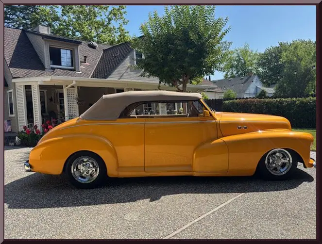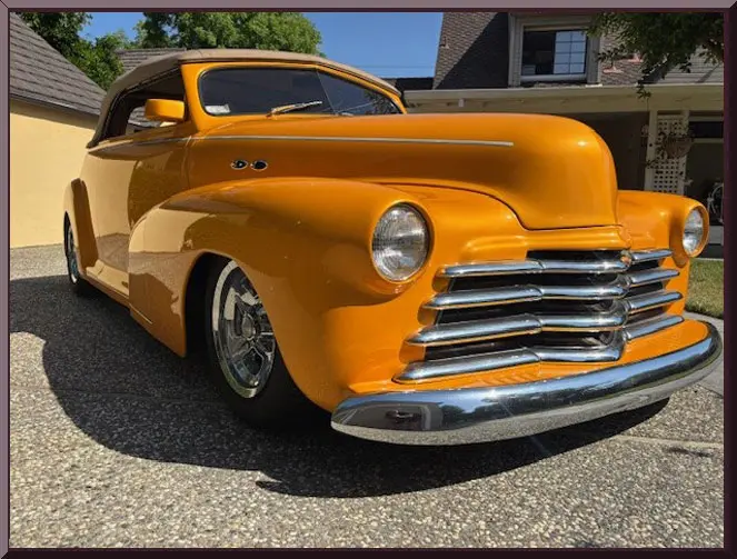 Classic Car Marketing, Inc. Southern California’s premier marketing company is pleased to introduce this new listing offered for sale by one of our clients. This 1947 Chevrolet Convertible Custom is all steel in a show quality House of Kolor Sunrise Pearl and is outstanding all around with extensive body mods. Let’s start with a custom grill, chopped top, pancaked hood, frenched antenna, frenched headlights, frenched taillights with Chevrolet bowtie, molded body seams, rounded door edges, shortened bumpers, custom wipers, hidden trunk hinges, and remote doors, deck, and gas lid. Under the hood find an updated LT1 motor for your driving pleasure backed by a 700R 4 transmission with overdrive, mustang two front suspension, 10 bolt rear, and power brakes, disc in the front and drum in the rear. Move inside to find classic custom leather upholstery with tinted glass, power seats, power windows and power mirrors, custom dash with VDO gauges, tilt column, ice cold air conditioning and stereo with DVD. Everything on this custom classic is so nice, all you need to do is get in and enjoy the ride. Vehicle is located in Sacramento, Ca. Offered at $62,500 OBO. Inspections are encouraged before any purchase, of any vehicle, anywhere.