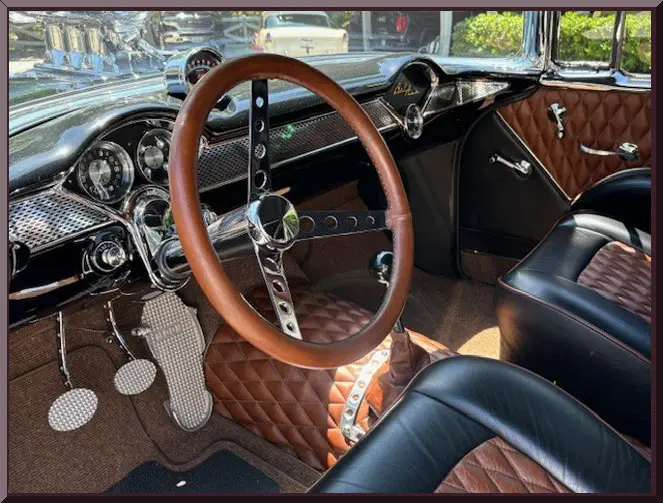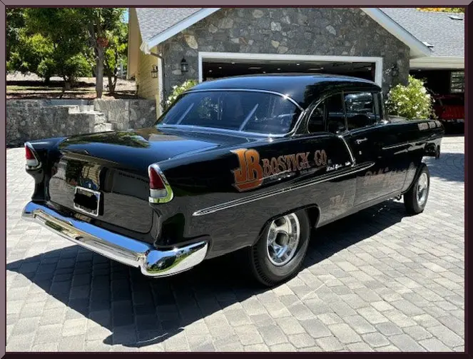 Classic Car Marketing, Inc. Southern California’s premier marketing company is pleased to introduce this new listing offered for sale by one of our clients. This 1955 Chevy Gasser is built around a Big Bad Bitchen Blown 409 Big Block cranking out 750 HP and is nothing short of spectacular inside and out. Pro built by Cambra Speed Shop in Orange, California, only the best of the best hands on for this classic bad boy. 671 Hampton Blower, hand built 3 inch exhaust, Muncie 4 Speed M-22, 1957 Olds rear-end, 4:11 posi traction, Custom 6 foot ladder bars, panhard bar. Custom chromed front straight axle, Wilwood master cylinder, with disc brakes up front, drums in the rear. Custom black and brown leather interior, Classic Industries gauges, Moon Eyes oil gauge, custom roll bar, and Kenwood stereo. Late 60’s style E/T Rims finish out the look on this one just right. Offered at $197,500 OBO. Inspections are encouraged before any purchase, of any vehicle, anywhere.