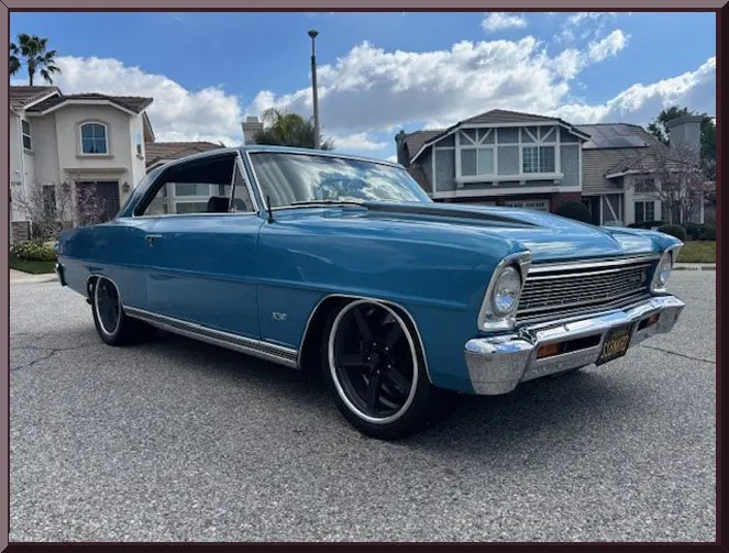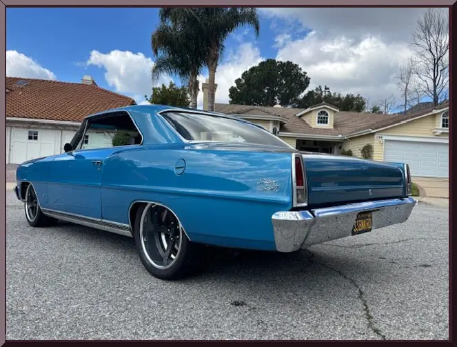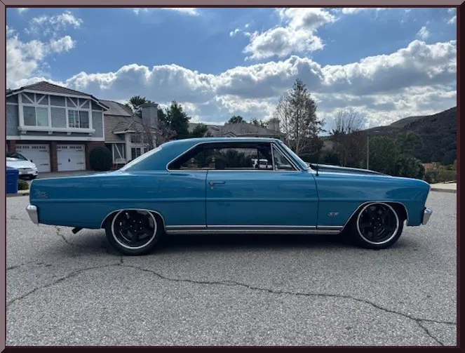 Classic Car Marketing, Inc. Southern California’s premier marketing company is pleased to introduce this new listing offered for sale by one of our clients. This 1966 Chevy Nova is aTrue SS car, 118 vin, in Marina Blue, professional build by Scott’s Hotrods and is just bitchen all around. Power is supplied by a modified LS3, pounding out at 525 HP backed by a Tremec TKX 5 speed to feel the pedal to the metal. Transmission and rear end built to handle 650 HP, if you dare. Ford 9 inch, Moser rear end. Scott’s Hotrods IFS front clip, Scott’s Hotrods 4 bar rear suspension, torsion spine sway bar, Ridetech coilovers, power rack and pinion, Wilwood brakes, 14 inch drilled and slotted roters, 6 piston calipers in front with 4 piston calipers in back. New radiator, new aluminum fuel tank, new in tank pump, sending unit, and new brake lines. Mini tubed. Hot Rods by Boyd wheels HRX Series: 18 x 9 in front 255 x 35 x 18 and 18 x 11 in back 315 X 30 x 18. Inside find a new redone interior with fresh seats and carpet, working E brake, ice cold air conditioning, stereo with Bluetooth with new front speakers and kick panels, and new speakers in the rear all to roll with your favorite tunes. You won’t want to miss this one. Offered at $149,500 OBO. Inspections are encouraged before any purchase, of any vehicle, anywhere.