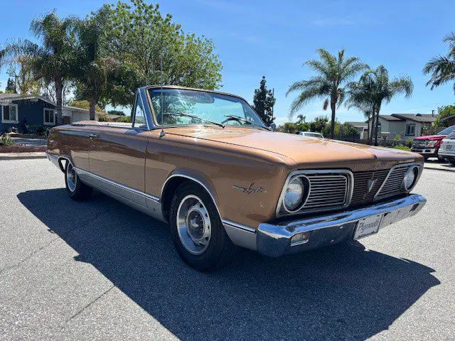 This 1966 Plymouth Valiant Signet Convertible is very rare with only 2,507 in production and has had the same loving owner for 30 years. This sweet treat is fully optioned with a 318 motor swap dressed up to look like the original 273 she was born with. The 3 speed column shift has been replaced with a 904 automatic transmission. 8 ¾ rear end with 297 gears, disc brakes with factory proportioning valve, and power matching convertible top. Inside find a saddle interior with bucket seats, hidden stereo with amp for too cool for school sound, and finished off with late model 14 inch wheels. This is a true classic throwback ready for a new owner to just get in and enjoy the ride. Offered at $32,000 OBO. For more information please visit our website at www.classiccarmarketing.net or call us at 619-972-7073. Please mention the vehicle you are inquiring about so we can respond promptly. Inspections are encouraged before any purchase, of any vehicle, anywhere.
