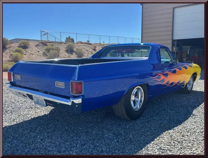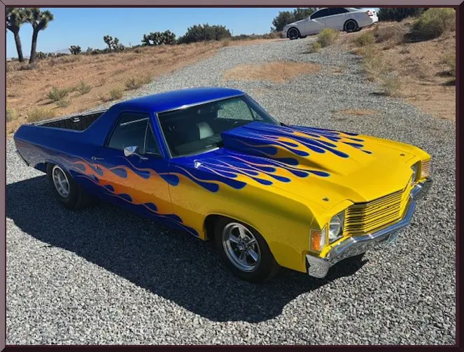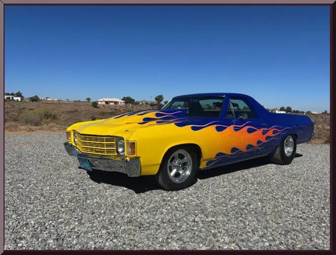 Classic Car Marketing, Inc. Southern California’s premier marketing company is pleased to introduce this new listing offered for sale by one of our clients. This 1972 Chevrolet El Camino Show Machine with House of Kolor Pearl paint with hand painted pin striping, will blow the competition away with its 468 Chevy Big Block under the hood. Add to that AFR 335 aluminum heads, ported and flowed Dart intake, Barry Grant 1025 Gold Claw carb, MSD ignition with digital 6 position controller, nitrous plate and solenoids, never used, 2 1/8 inch Hooker headers with 3 inch exhaust, Flowmaster mufflers, Art Carr turbo 400 with reverse manual valve body, 3500 rpm converter, 4 inch aluminum driveshaft with 1350 U joints, line lock, disc brakes in the front, drum in the rear, narrowed 12 bolt rear with Ford ends, Moser 31 spline axles, and 2 inch dropped spindles up front. But wait there’s more: All new reupholstered seat, new door panels and carpet, and B&M shifter. All this cool sits on 15×5 American front wheels with 165/15 tires and 15×10 rears with 295/65/15 Mickey Thompson drag radials to finish off this show stopping stunner in spades. Offered at $52,500 OBO. Inspections are encouraged before any purchase, of any vehicle, anywhere.