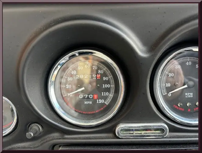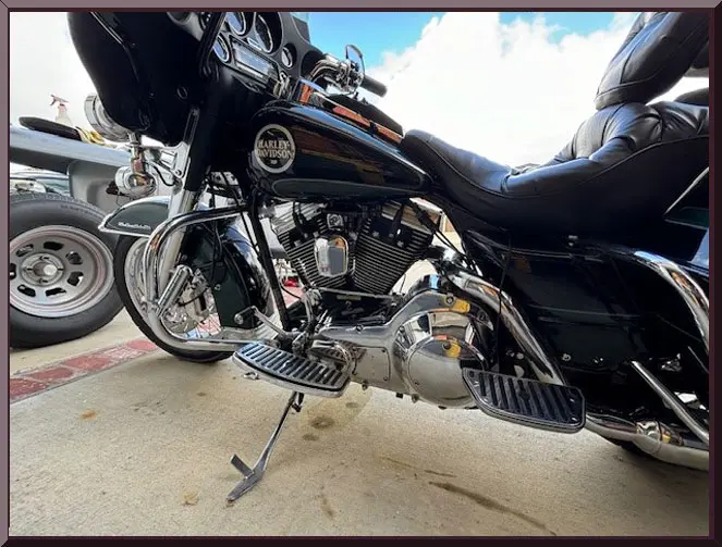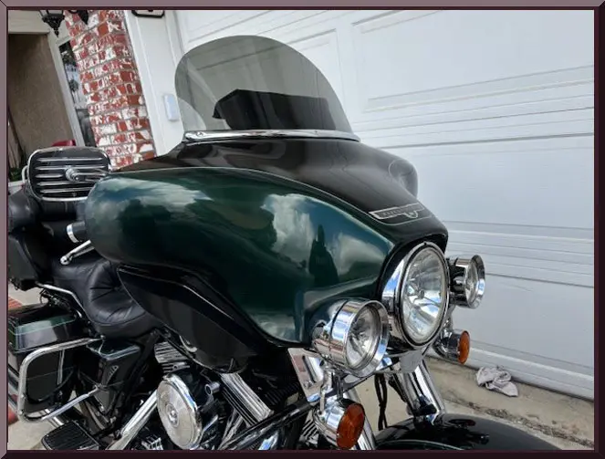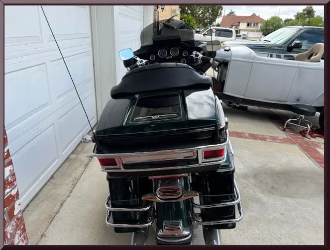 Please be sure to mention the specific vehicle you are inquiring about so we can respond promptly. A black touring motorcycle parked on a driveway. Close-up of a classic Harley-Davidson motorcycle parked outdoors. Black and chrome touring motorcycle parked in front of a garage. A black touring motorcycle with a large rear storage box and chrome details. Close-up of a black touring motorcycle parked outdoors. Close-up of a vehicle speedometer showing speeds up to 140 mph. Rear view of a black touring motorcycle with storage compartments. Green motorcycle parked in a garage with a large windshield.