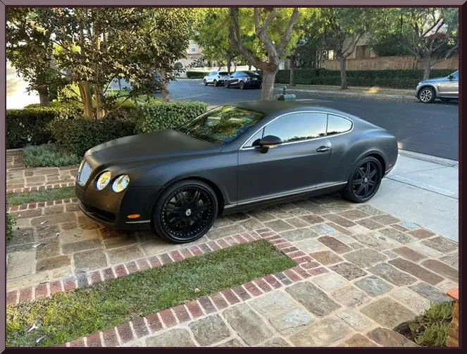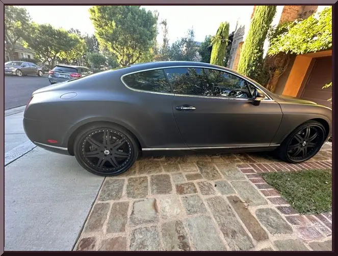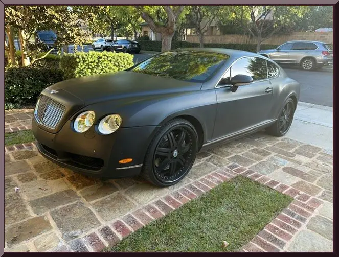 Classic Car Marketing, Inc. Southern California’s premier marketing company is pleased to introduce this new listing offered for sale by one of our clients. This 2005 Bentley Continental GT remained registered to its original owner until 2014, when the present owner took it over and the fun began. He added a bitchen full mat black wrap covering the Beluga over Portland factory finish. Power is supplied by a twin turbocharged 6.0-liter W12 factory rated at 552 HP and 479 LB-ft of torque linked with a six-speed automatic transaxle, an all-wheel-drive system, and a Torsen center differential. Cool custom alloy wheels, adaptive air suspension, xenon headlights, mesh grille inserts, polished trim, front and rear parking sensors, and integrated dual exhaust outlets with polished finishers. Inside, the cabin features tan leather Beluga upholstery along with Beluga leather on the upper dashboard and door panels. Wood trim accents the interior, as well as a dash-mounted Breitling analog clock, heated power adjustable memory and massaging front seats, heated steering wheel, navigation, ridiculous12-speaker audio system with CD, automatic climate control, and cruise control. This Continental GT has approximately 74k miles, and drives, rides, and looks like the ultimate dream machine. Original stock rims come with the sale. Offered at $28,500 OBO, this one is a steal deal. Inspections are encouraged before any purchase, of any vehicle, anywhere.